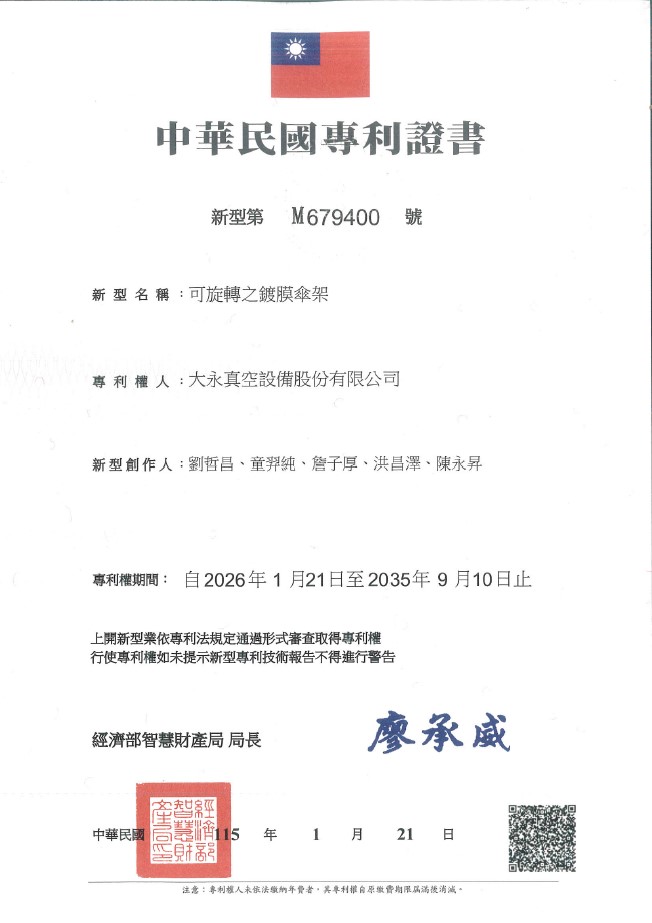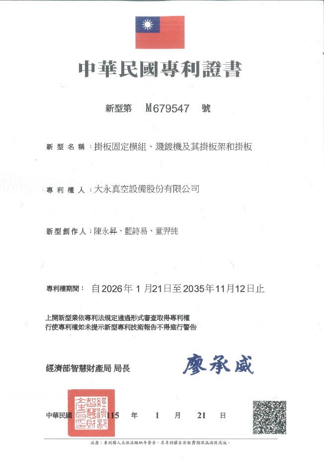 中華民國專利證號: M679547 |