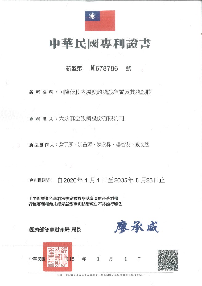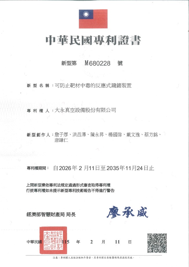 中華民國專利證號: I682047 |