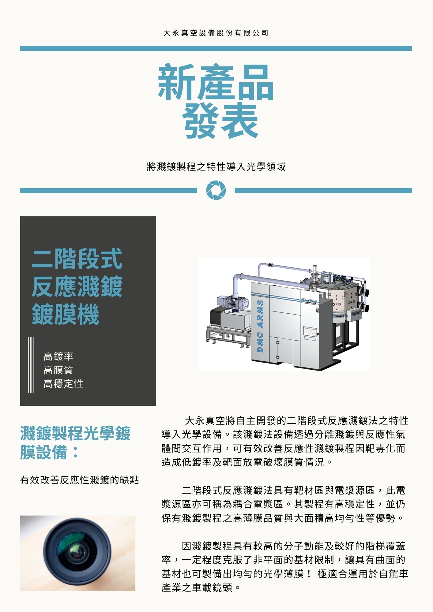 【新設備發表】二階段式反應濺鍍鍍膜機