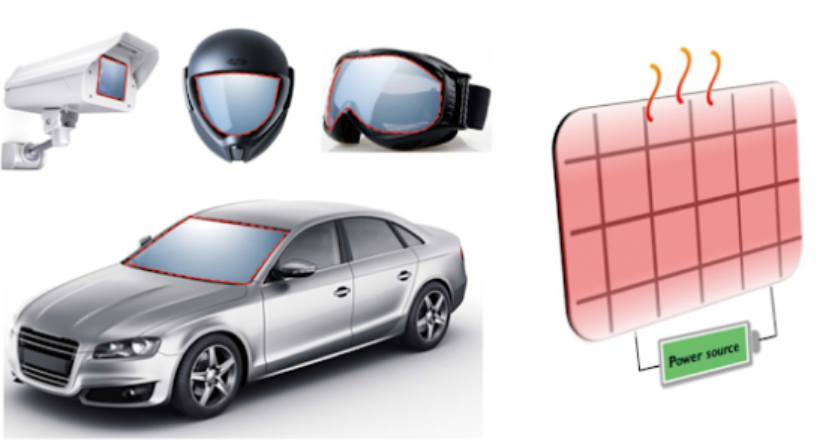 透明加熱膜:藉由直流電源通過阻抗電路產生熱能,讓霧氣不會附著於表面。例如,窗戶、監視器、擋風玻璃、鏡子、安全帽擋風鏡、滑雪鏡……